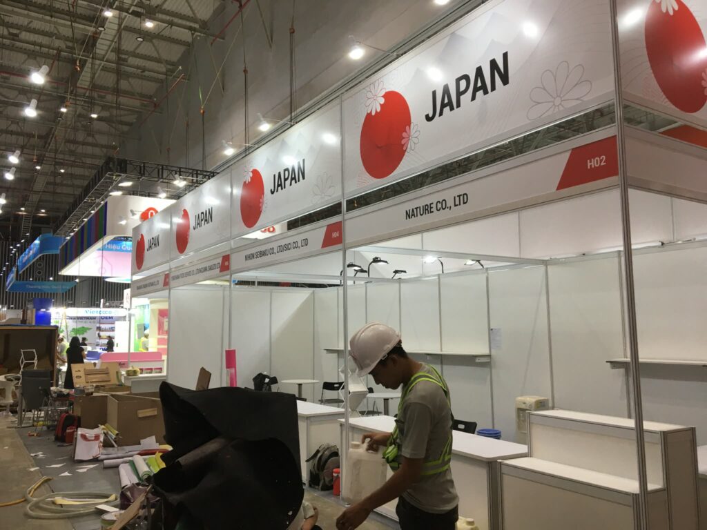 日本の食品の海外輸出は右肩あがりで推移しており、ここベトナムにおいても日本の食品の人気は高く多くの日本の食品、加工食品、水産品、水産加工品がベトナムへ輸出されています。今回は神奈川産業振興センター様(KIP様)よりFood Expo2025年に出展される企業様をご支援させて頂きました。前日準備に関係者として入り現地スタッフの作業の工程を管理して思うことがありました。ベトナム人の馬力は凄いなと。。。「前日でこの段階、本当に間に合うのか?」と心配していましたがそこはやはりベトナム人、手際よく、明るく(音楽をかけながら)急ピッチで準備をしておりました。展示会の報告はまた別途いたします。