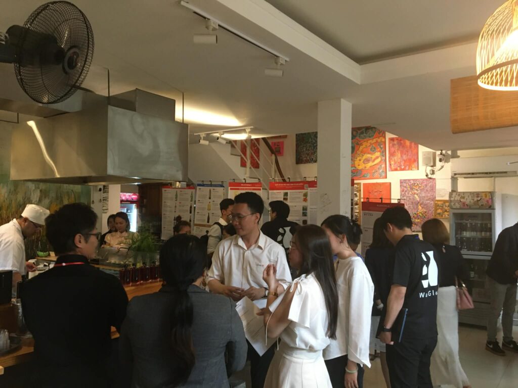 今までもベトナム料理店でのイベントは行ってきましたが、今回はホーチミン日本領事館で料理人として働いた経験のある伊藤さんのお店である花美でベトナム料理をアレンジして頂き約50名以上のベトナム人のディストリビューター、インポーター、飲食店経営者、各企業でのマネジメント層の方々に九州の日本酒とベトナム料理のマリアージュを楽しんで頂きました。